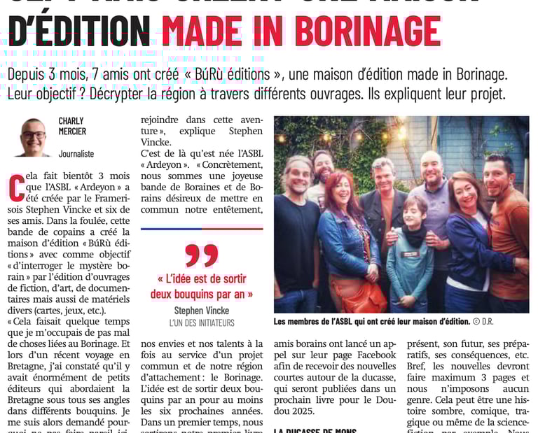 L'asbl Ardeyon a été créée en mars 2024 par sept terroiristes borains, désireux de mettre en commun leur entêtement, leurs envies et leurs talents au service d'un projet commun lié à l'exploration de leur région d'attachement : le Borinage.